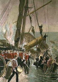 The sinking of the HMS Birkenhead and the Danger Point Lighthouse.